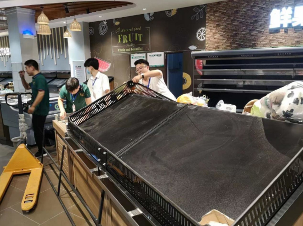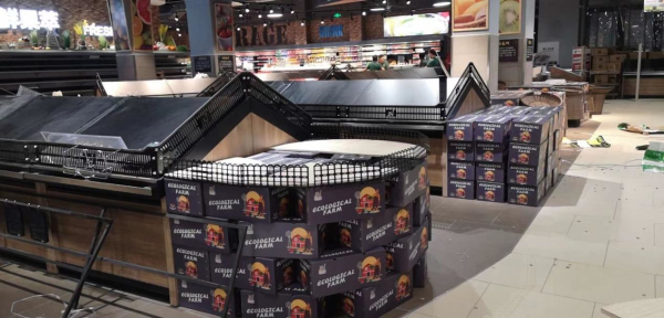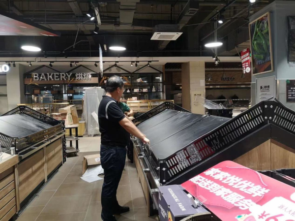2020年9月6日,在我们的配合下,家家悦济南国华店初步现场施工中: