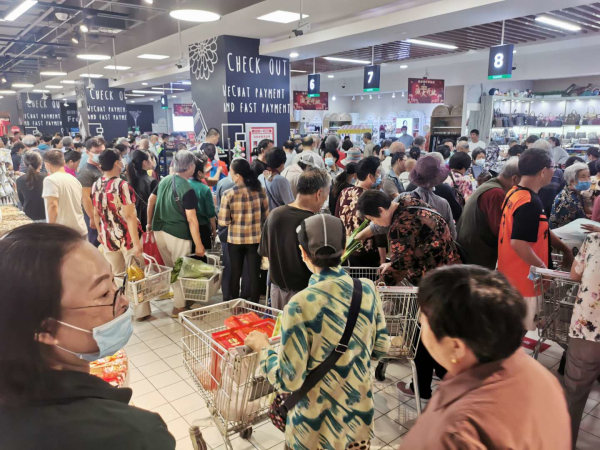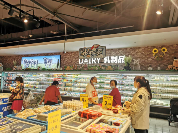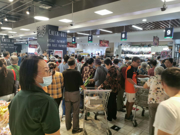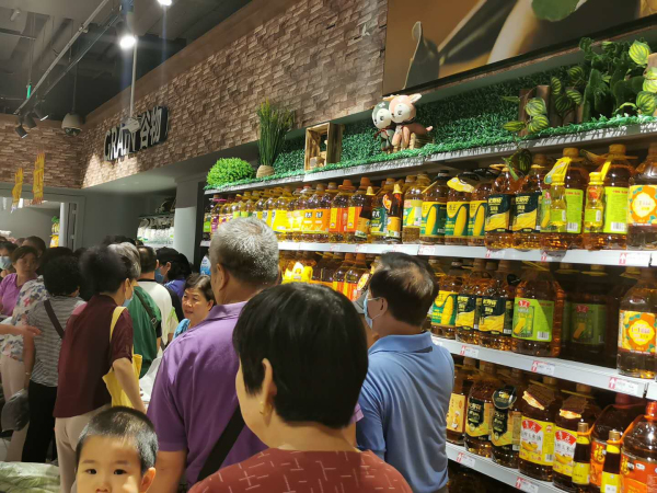 一大早,超市门口就早早的排起了队,生鲜区,收银区人山人海。