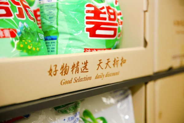 家家悦寿光万达折扣店作为家家悦系统折扣店,我们通过大量的分析设计,确定了以整齐划一,简洁大方为主要的陈列设计方向。在设计过程中通过大量使用定做纸箱,使柜体整个牌面整齐,通过纸箱与底部托盘的搭配,柜组陈列简单,减轻了柜组陈列的工作量。使后期维护更加快捷。