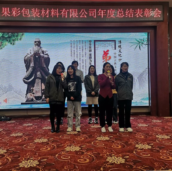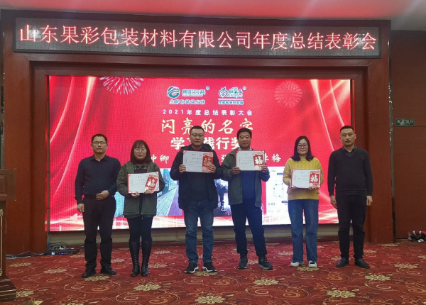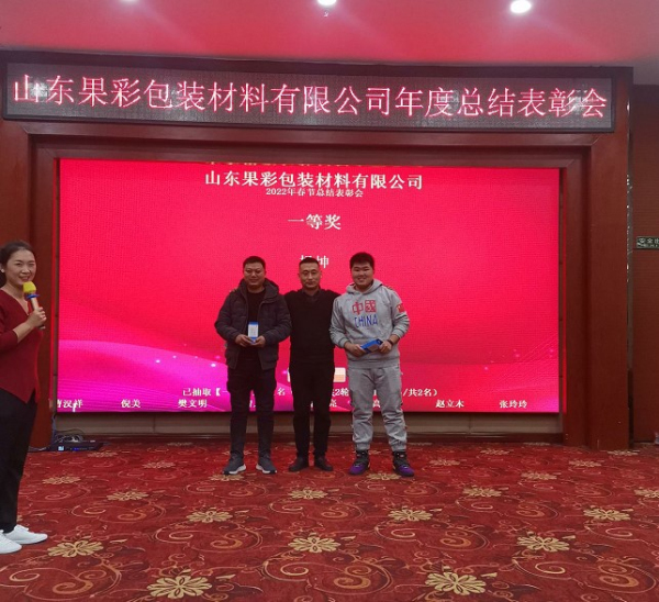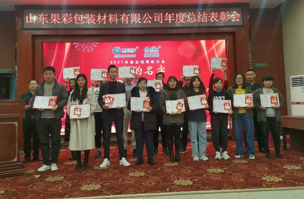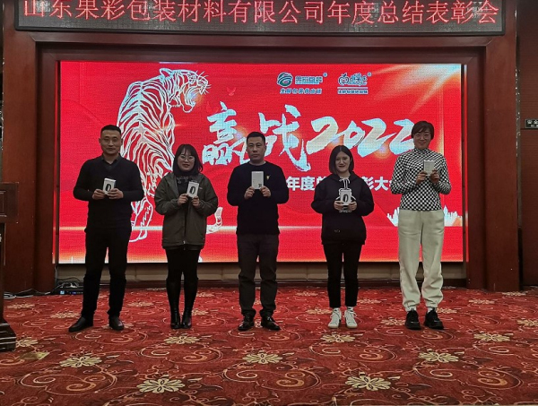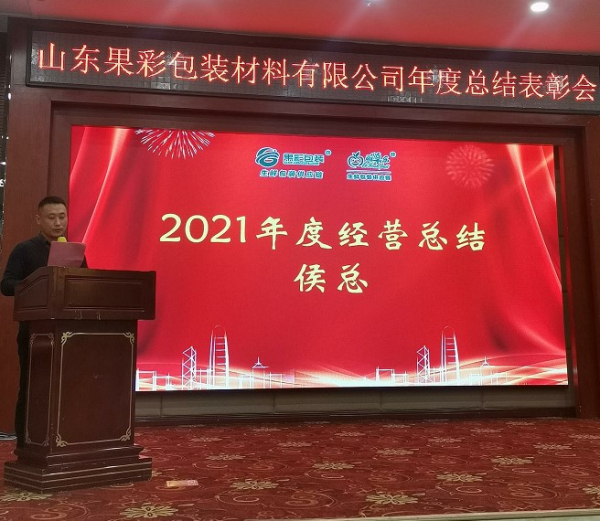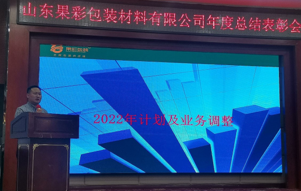 一元复始,万象更新,2022年2月18(正月十八),山东果彩包装材料有限公司在仙客来酒店如期举行了2021年度总结表彰大会。