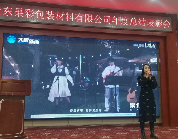 感谢大家带来的精彩表演,同时,也要感谢公司领导和全体同仁,谢谢你们为果彩包装的辉煌排除万难,同舟共济做出的贡献。未来我们将继续迈着自信的步伐,走进下一个美好的季节,步入全新的一年。再次祝大家在新的一年里万象更新 好运常伴!